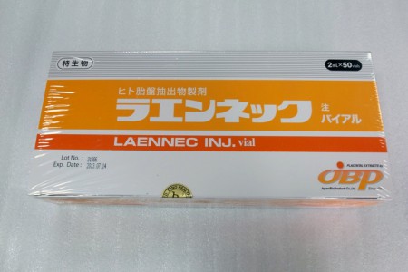 LAENNEC 胎盘素活细胞针剂是最早获得厚生省批准的产品之一,有超过40年临床研究医疗经验的成果,JBP以独特的技术,能有效地提取人类胎盘中各种生物活性物质而制成医疗用的药品,对于受损的肝脏,促进肝实质细胞的增值,进行修复。此外,基于现代科学的水平采取严格的安全措施,所以可以安心使用。